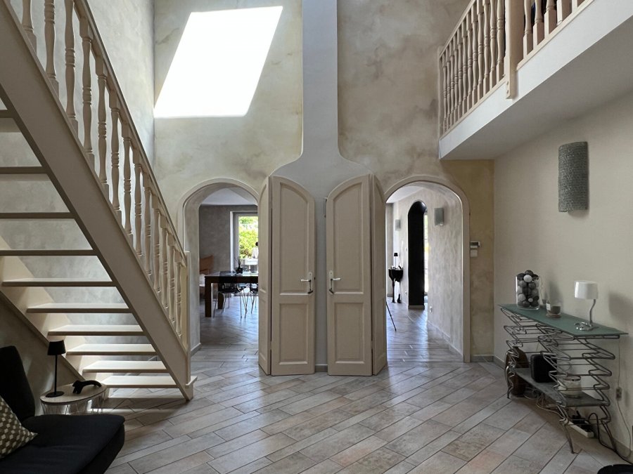 À l'étage, une grande mezzanine baignée de lumière vous mène à une véranda et une terrasse privative. Trois belles chambres, une salle de bains, une salle d'eau, et des espaces de rangement viennent parfaire l'ensemble.